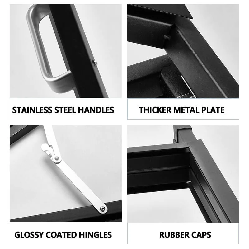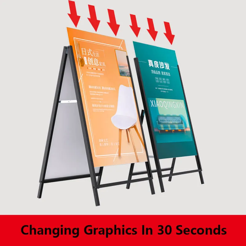 This type of A frame is made of heavy duty metals, the UV Printed panels will be inserted from top.